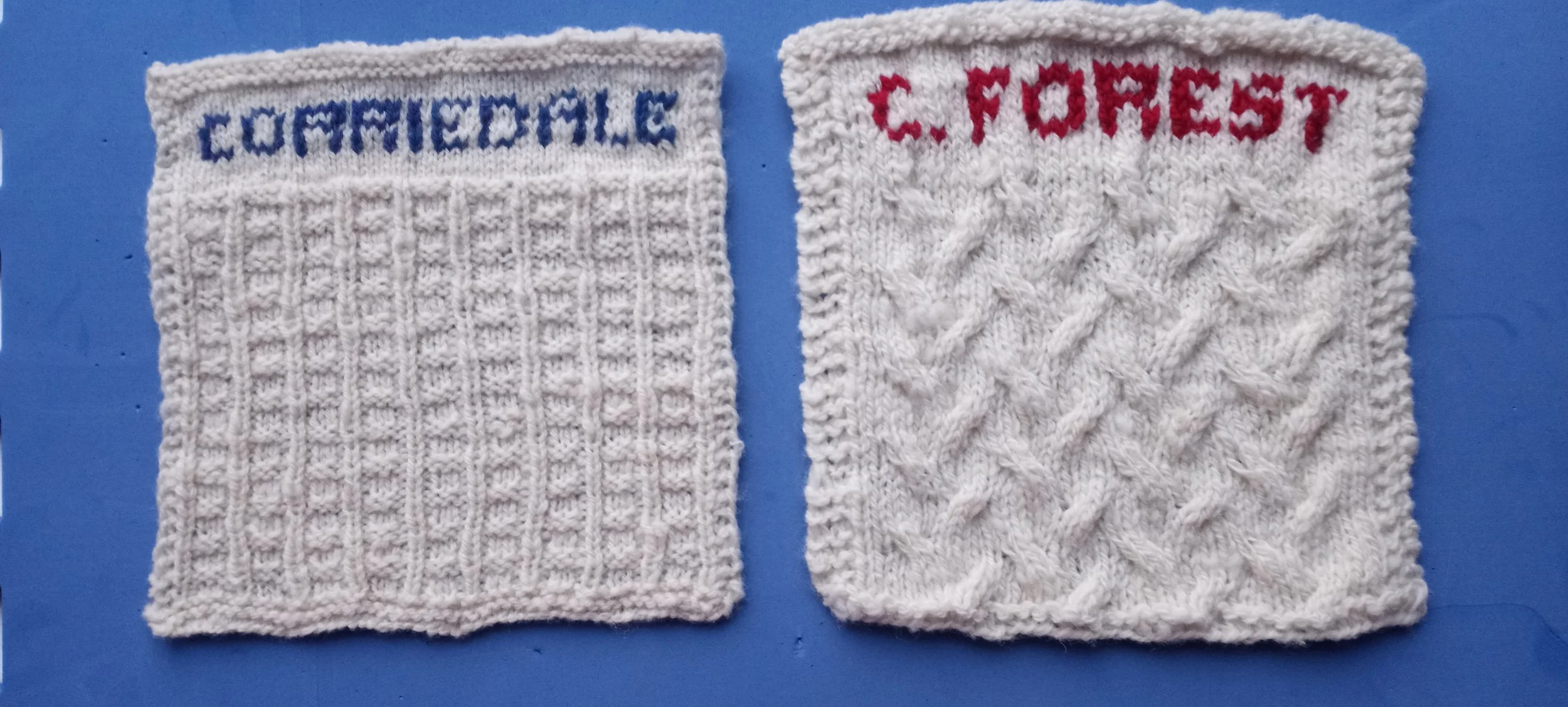Kathy is making individual squares each month for an afghan after the full year subscription. She is also working the name of the breed into the top of each square to remember the breed