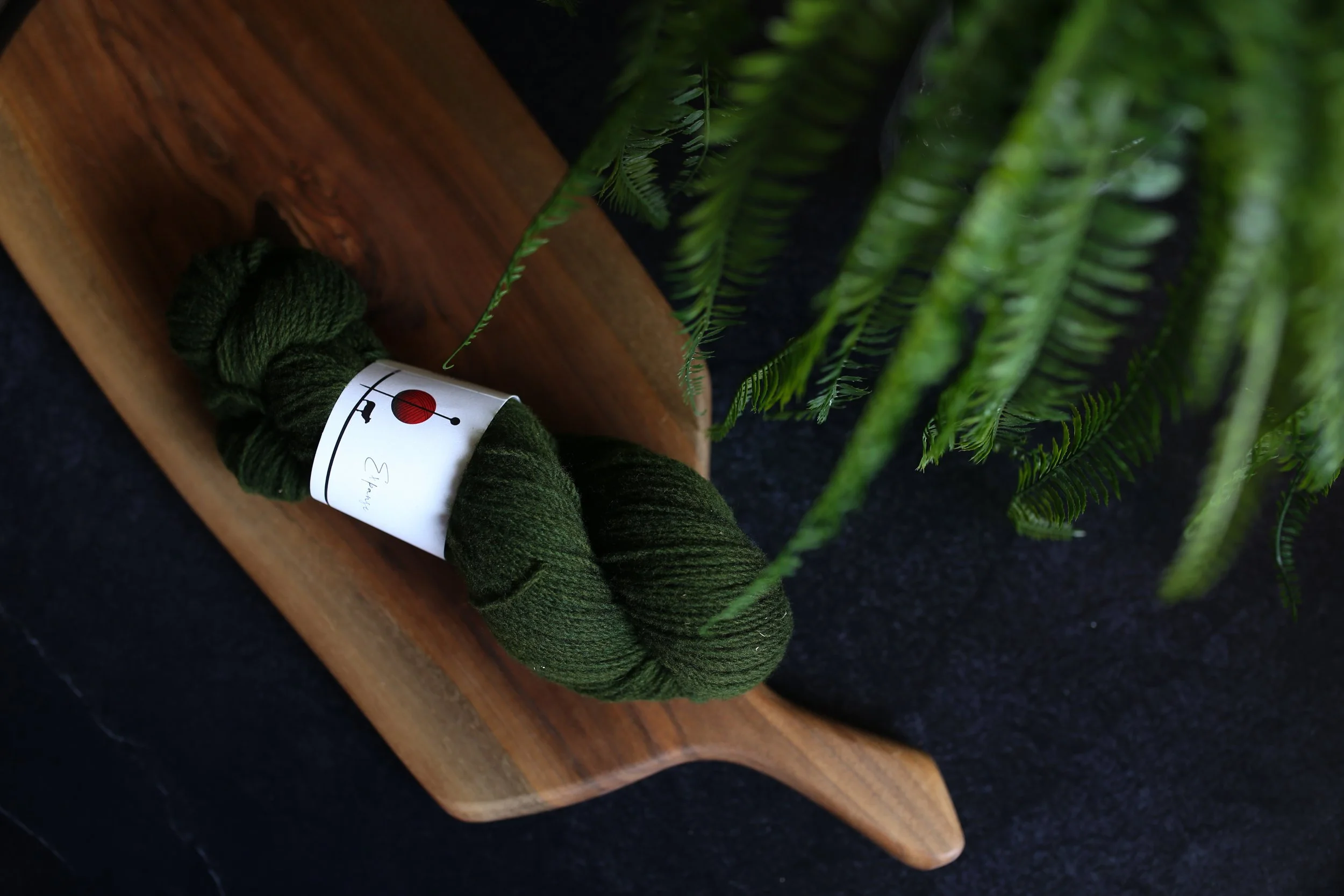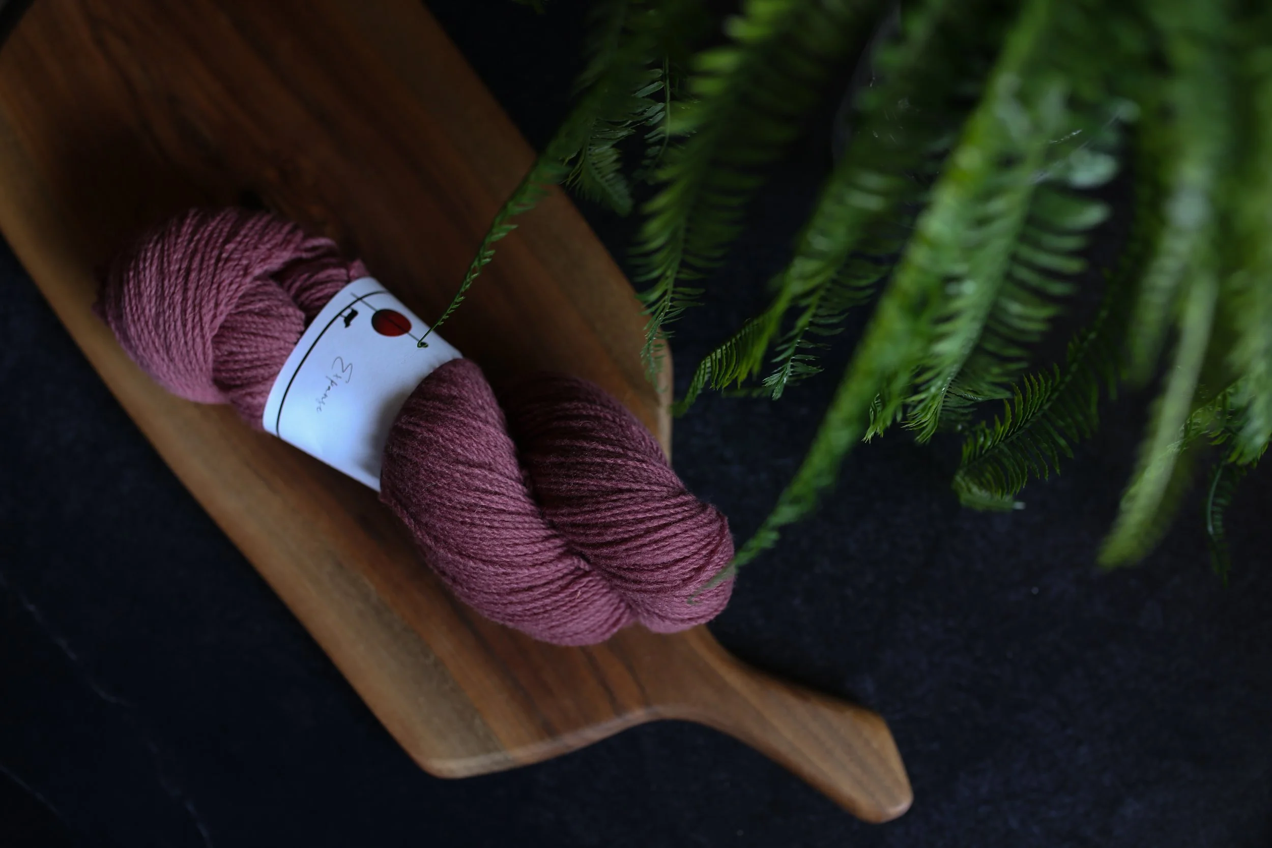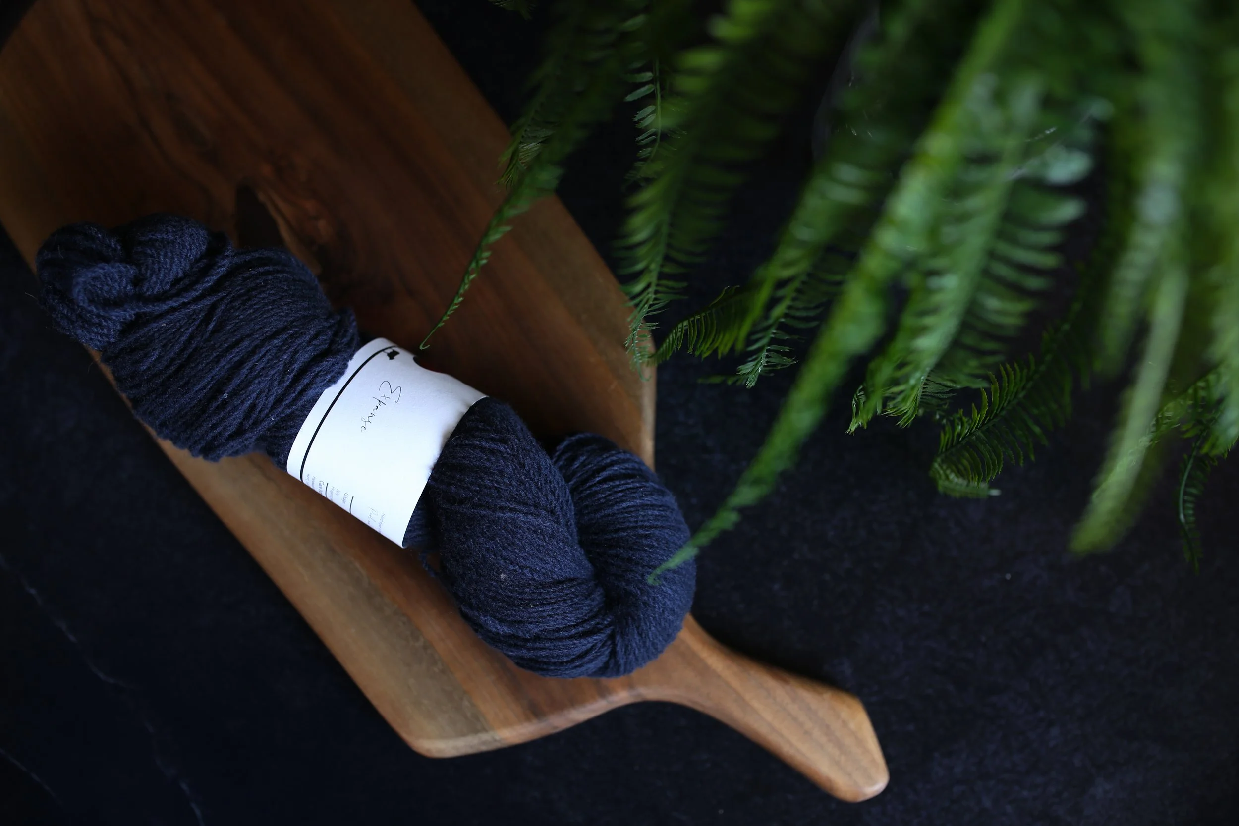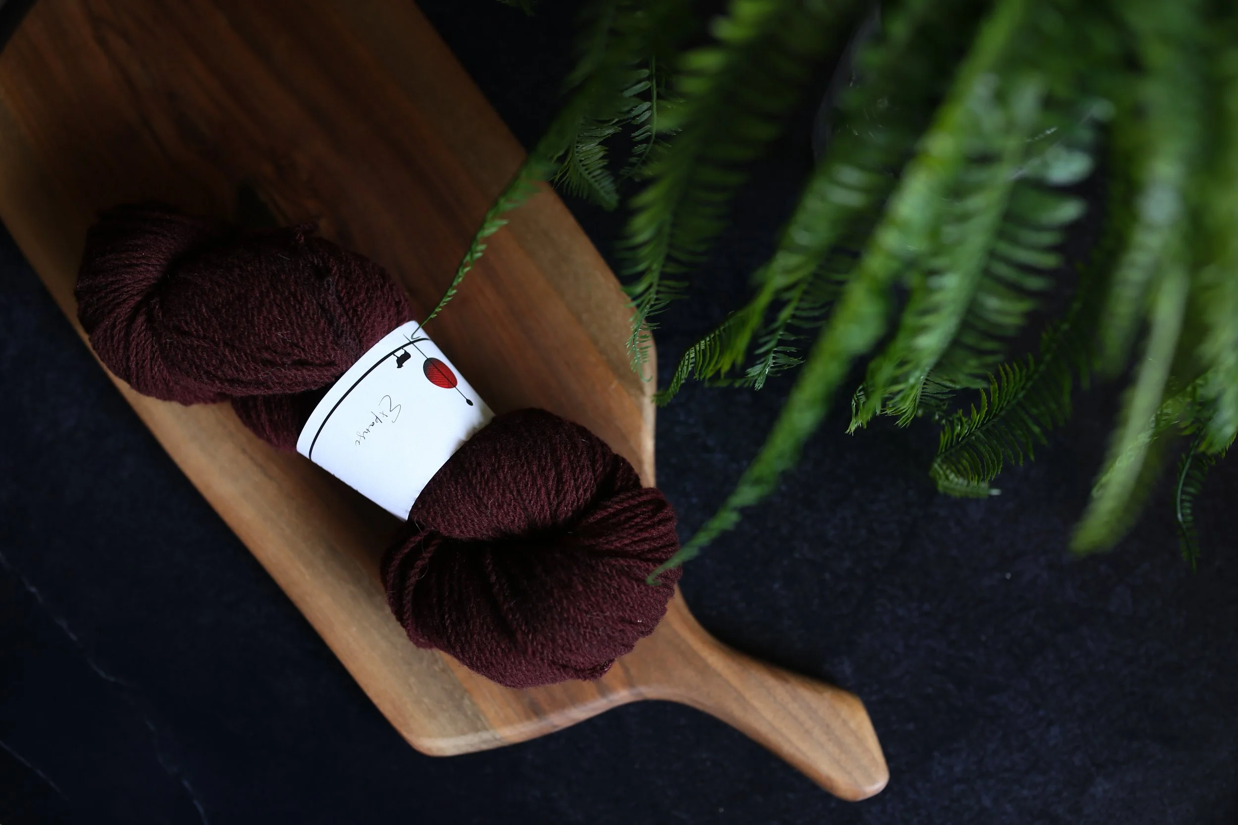 The base is our Grassland yarn. Wool is sourced from Manitoba and Saskatchewan sheep farms and processed at Long Way Homestead and Custom Woolen Mills. And dyed in-house by Crystal of Purl & Hank.