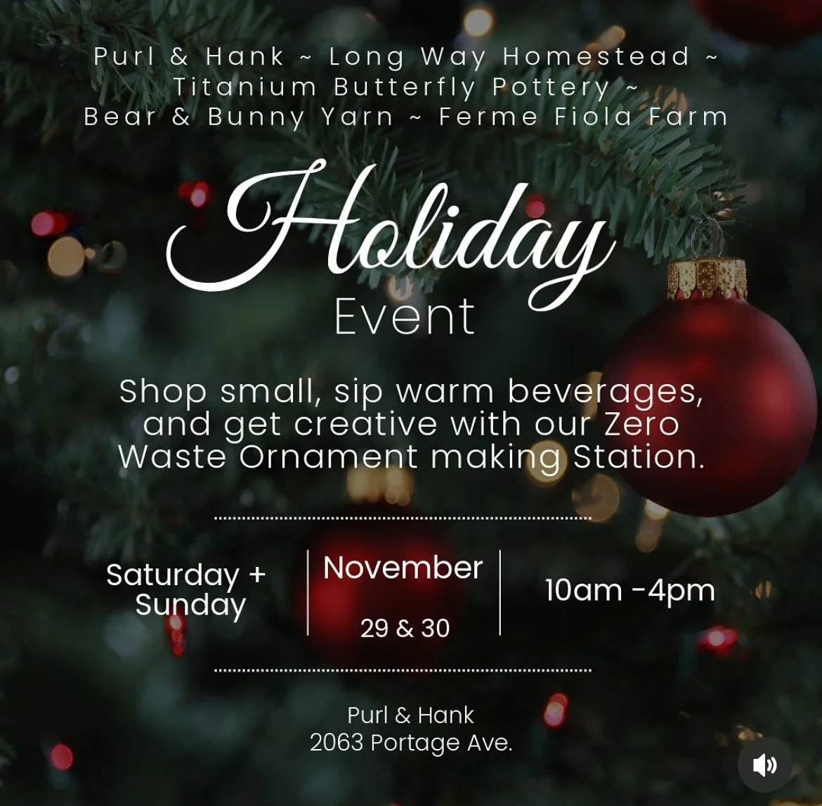 Come hang out with your knitting, make some zero-waste holiday ornaments and do your Christmas shopping with LOCAL wool!